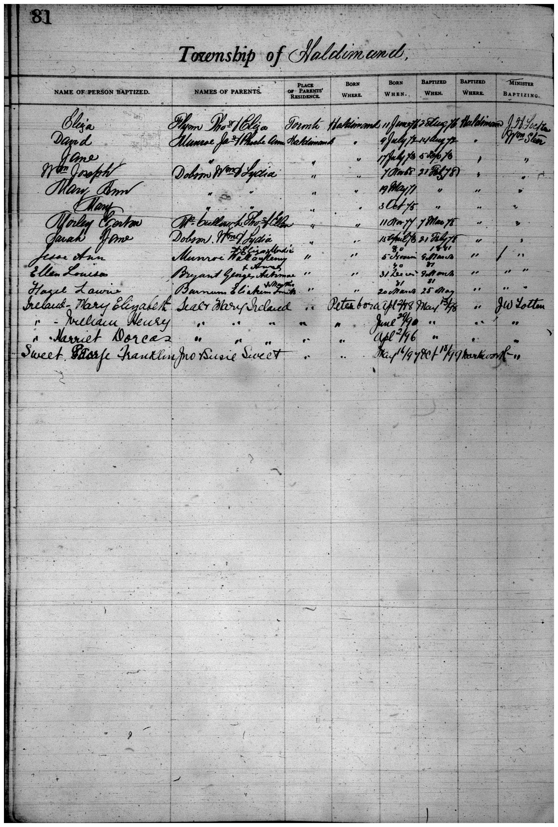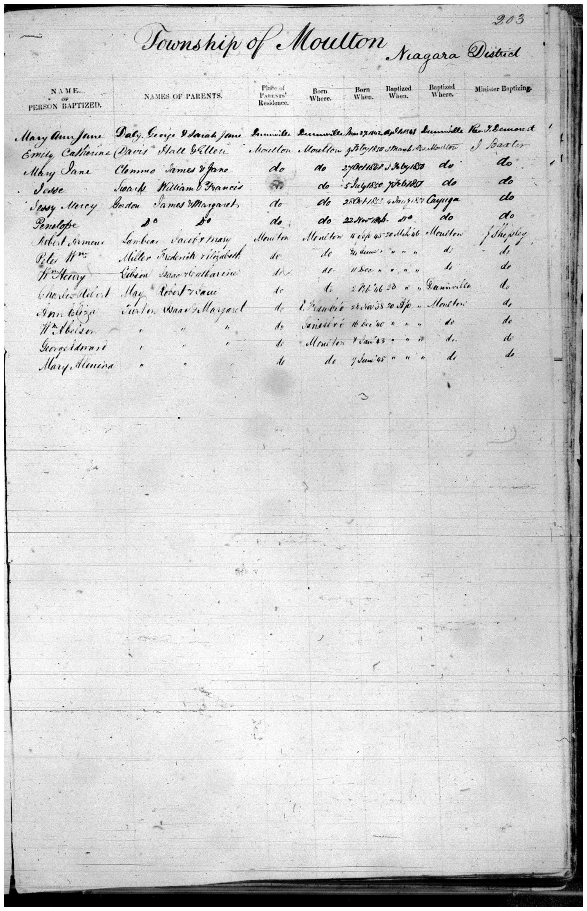 to the Wesleyan Methodist Baptismal Register |
